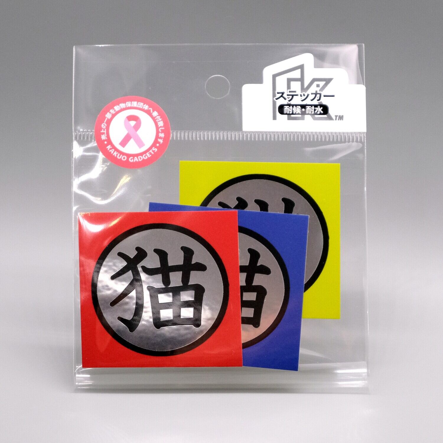 門標 猫ステッカー 赤・青・黄3色セット 銀ツヤ仕上げ